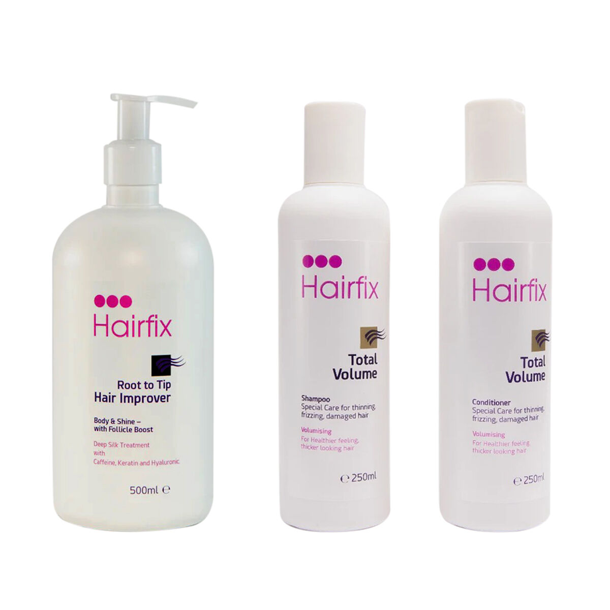Hairfix Total Volume Shampoo 250ml Hairfix Total Volume Conditioner Special 250ml Hairfix Root To Tip Hair Improver 500ml 4009211 Tjc